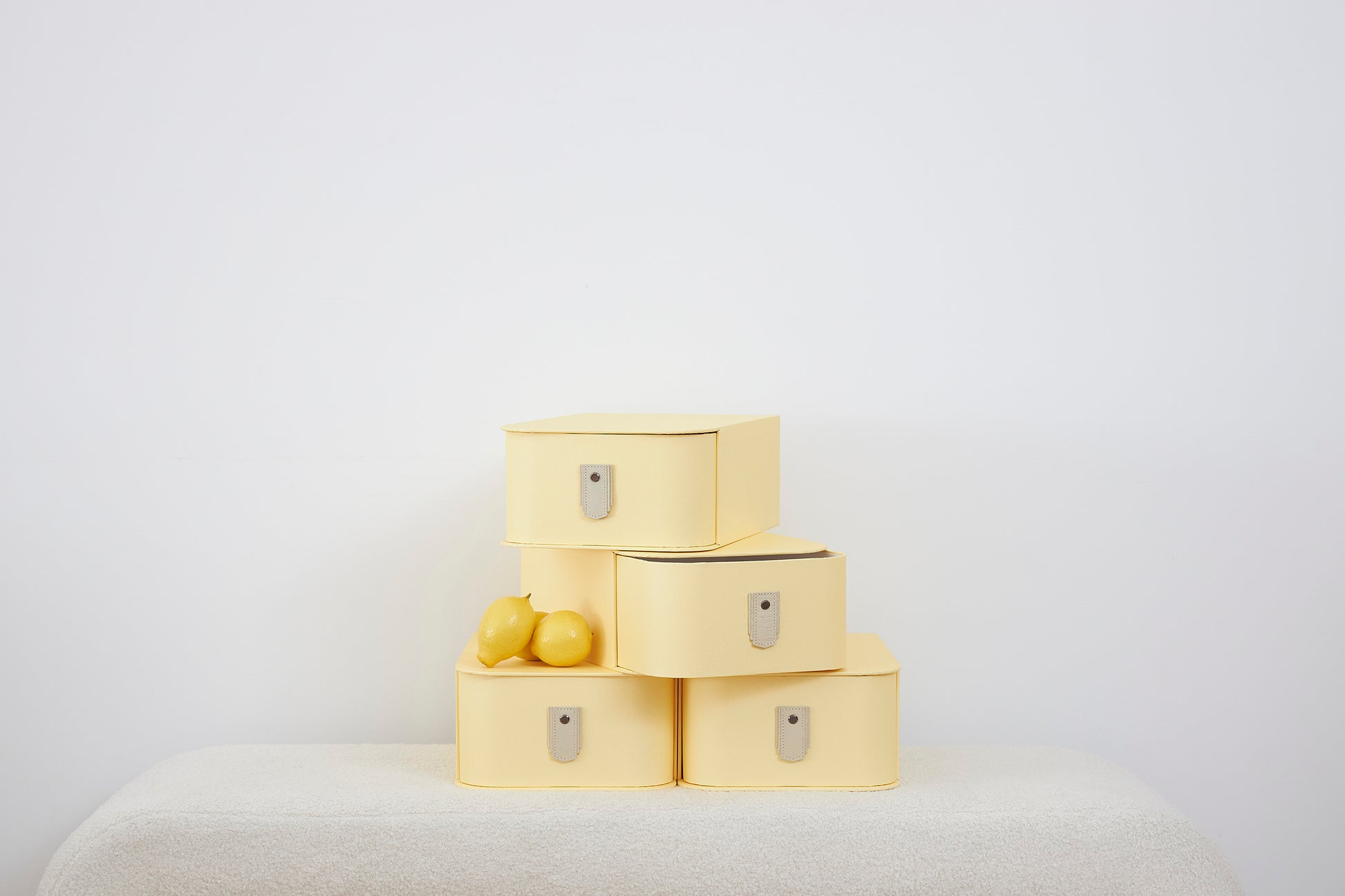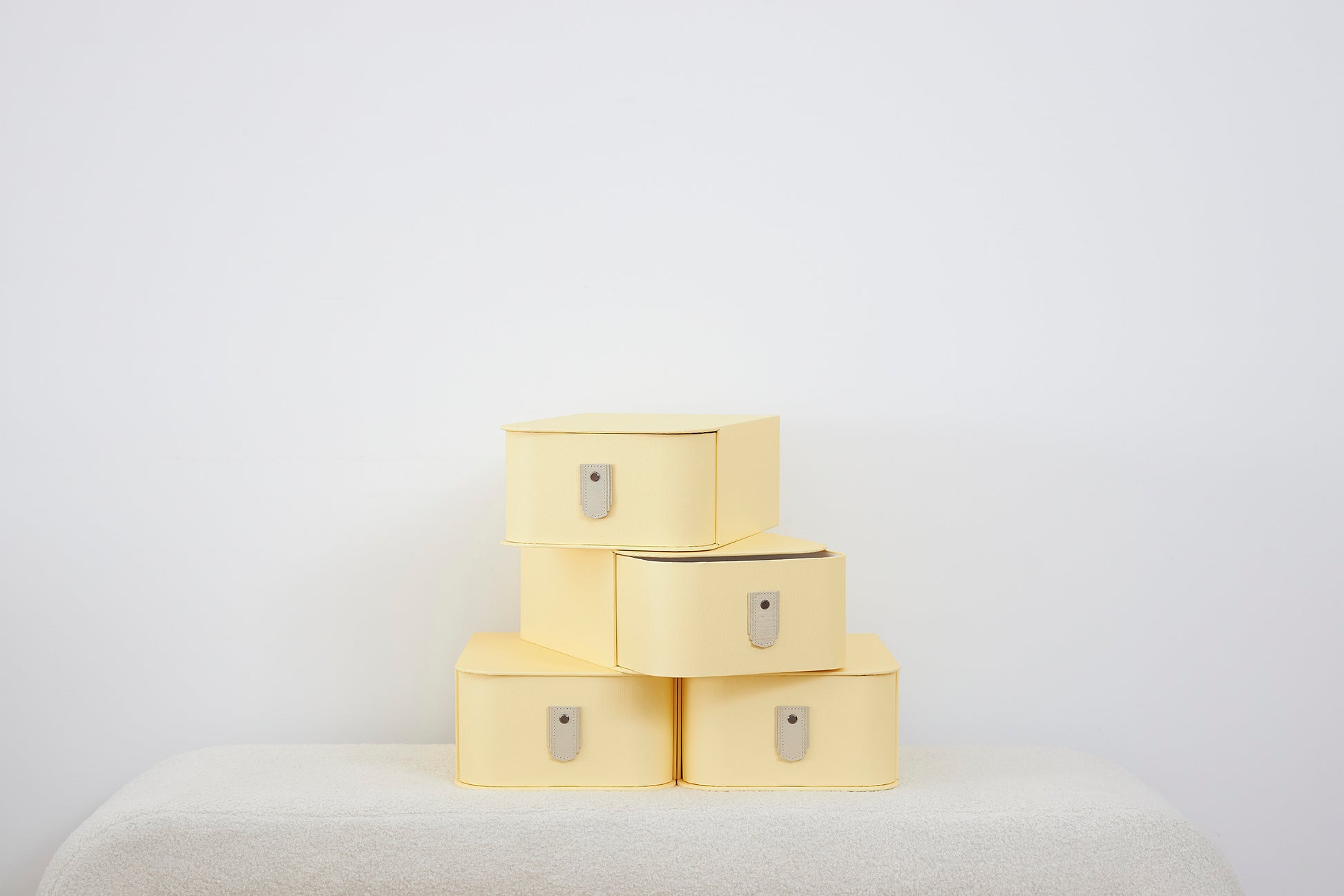 The Sagitine Leather Pull that accompanies the box is designed to be interchangeable, giving you the option to update the aesthetic of the boxes to match your current styling without having to replace the boxes entirely.